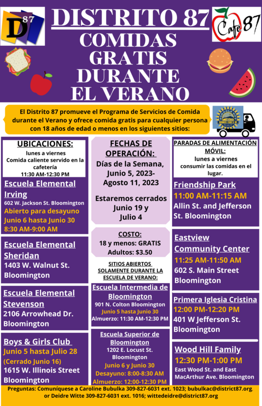 D87 will be sponsoring the Summer Food Service Program again this summer! See attached flyer for locations, dates, and times!
